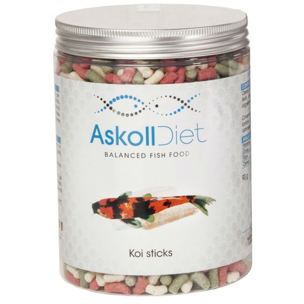 Askoll Diet Sticks è un alimento completo galleggiante per pesci ornamentali da laghetto, arrichito con Spirulina, paprika e germe di grano per aumentare le difese immunitarie dei pesci.