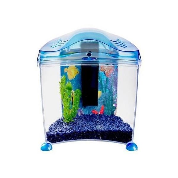 È fornito accessoriato con pompa filtro, ghiaino, piantina, sfondo bifacciale.