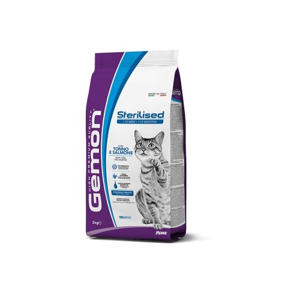 GEMON STERILISED CAT (+12 MESI) CON TONNO E SALMONE è un alimento completo per