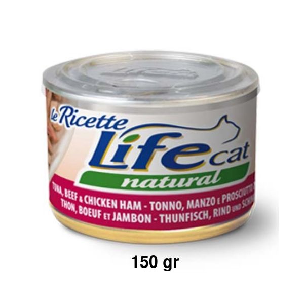 In un maxiformato da 150gr con tappo salva sprechi, si trovano trancetti di tonno della migliore qualità, guarniti con filetti di manzo e prosciutto di pollo. Il tutto cotto al vapore e conservato in brodo di cottura. Senza aggiunta di conservanti, additivi o coloranti. E’ un alimento ricco di proteine nobili, di preziosi acidi grassi essenziali omega 3 e povero di carboidrati, nel rispetto delle esigenze nutrizionali del gatto.