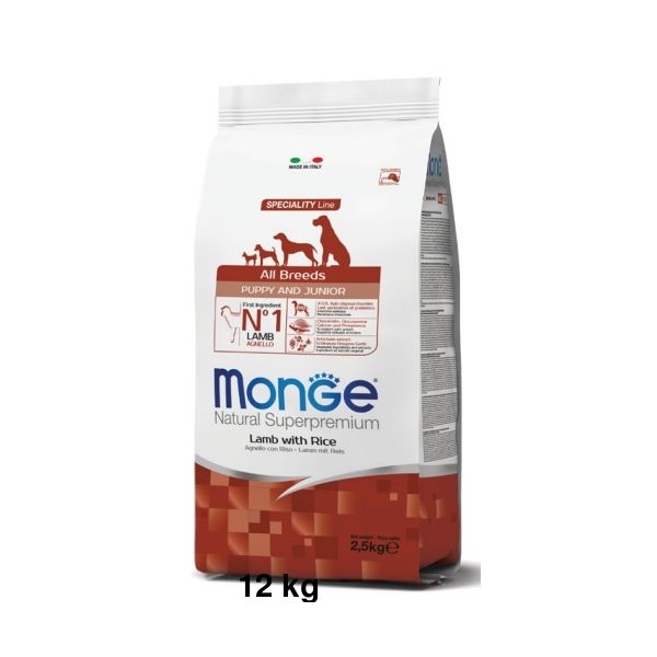 Monge Natural Superpremium All breeds Puppy and Junior Agnello con Riso è un alimento completo per cani cuccioli di tutte le taglie.