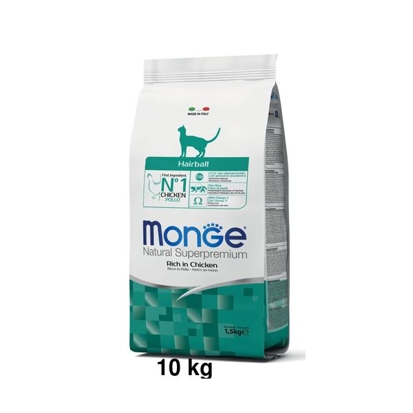 Monge Natural Superpremium Gatto Hairball Ricco in Pollo è un alimento completo e bilanciato per gatti adulti, che tendono a formare boli di pelo intestinali.