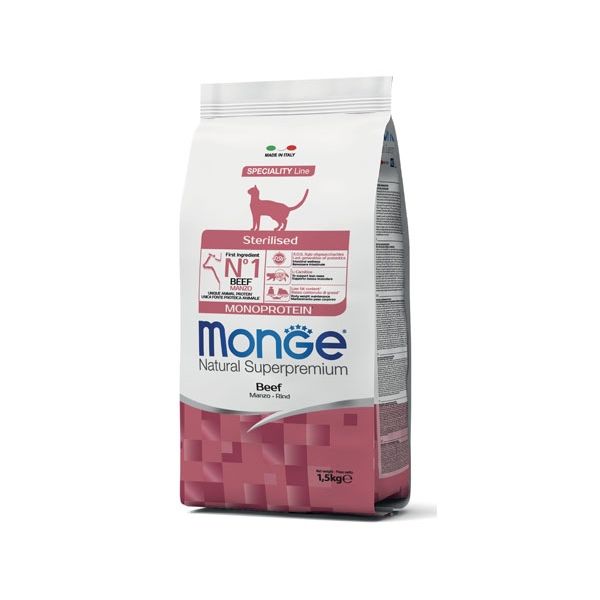 Monge Natural Superpremium Monoprotein* Gatto sterilizzato Manzo è un alimento completo e bilanciato per gatti adulti.