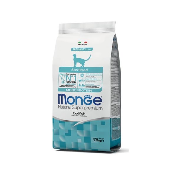 Monge Natural Superpremium Monoprotein* Gatto sterilizzato Merluzzo è un alimento completo e bilanciato per gatti adulti.