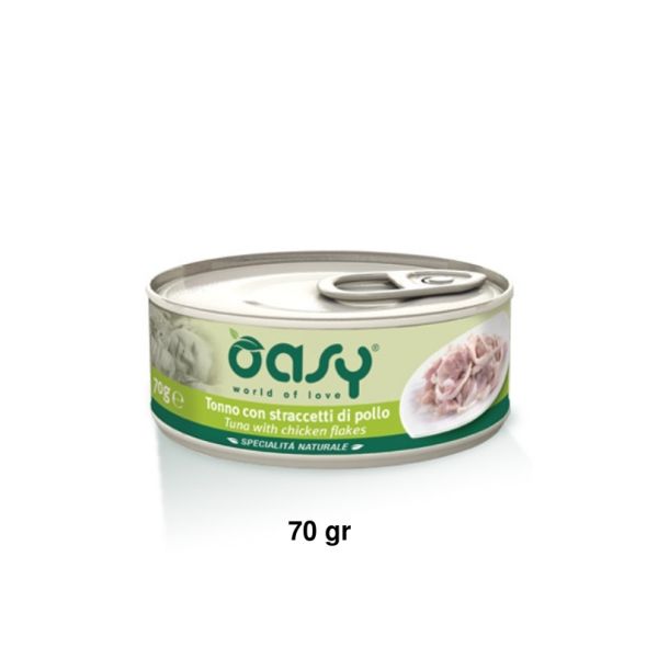 Oasy Specialità Naturale Umido Gatto Lattina Tonno con Straccetti di Pollo 70g
