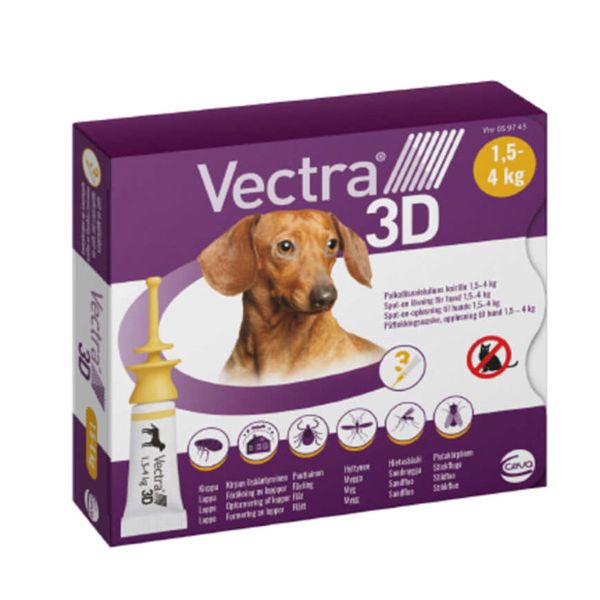 VECTRA® 3D è disponibile in 5 dosaggi differenti in base al peso corporeo del tuo cane.